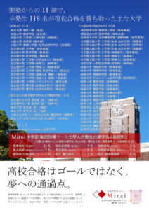 受付は集団指導コースの新小5生から新高3生で,各学年とも定員に達した時点で募集を終了します (新中1生・新中2生・新高1生は定員間近)。