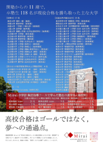 受付は集団指導コースの新小5生から新高3生で,各学年とも定員に達した時点で募集を終了します (新中1生・新中2生・新高1生は定員間近)。