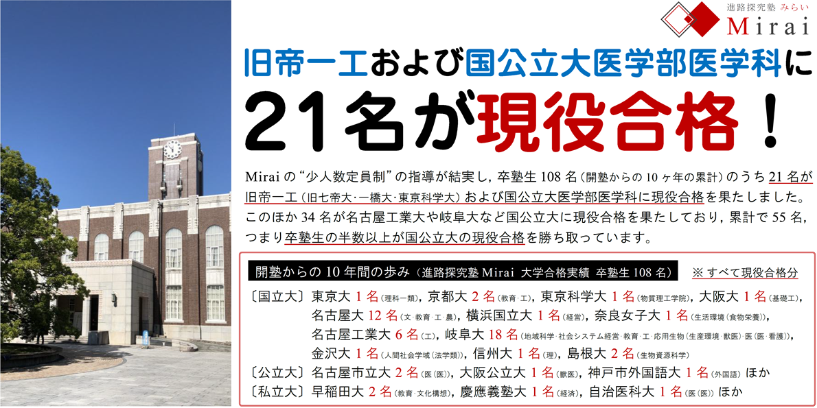 2025年 3月 『進路探究塾 Mirai』開塾10周年 (開塾からの累積入塾者数529名)