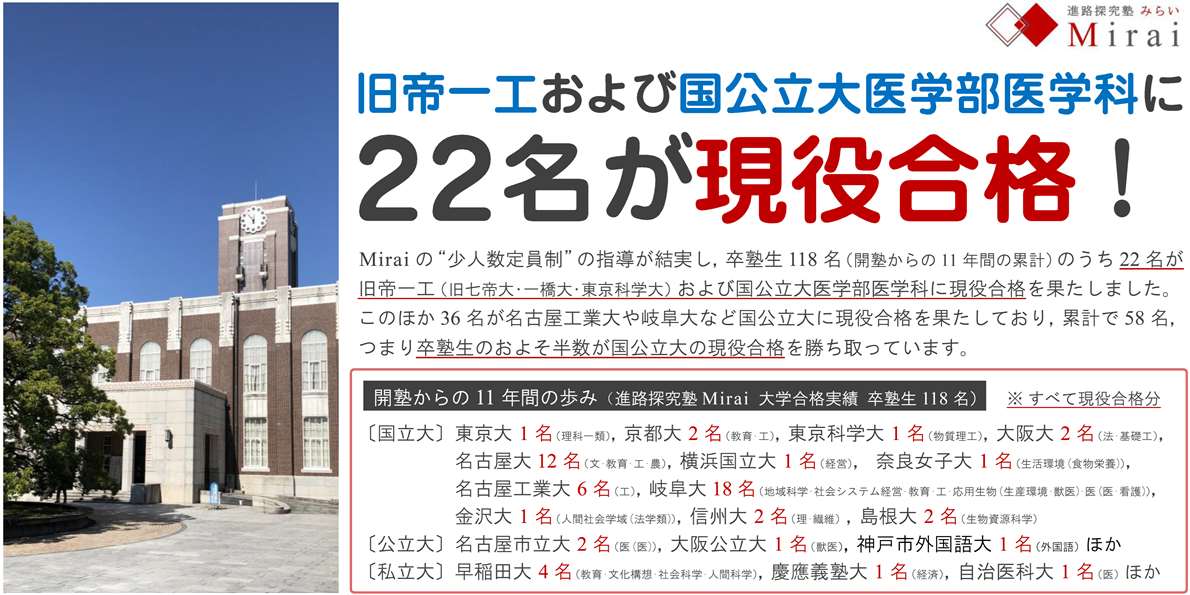 2025年 3月 『進路探究塾 Mirai』開塾10周年 (開塾からの累積入塾者数529名)